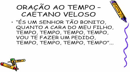 “És um senhor tão bonito/quanto a cara do meu filho/tempo, tempo, tempo/vou te fazer um pedido”…“Portanto peço-te aquilo/e te ofereço elogios/tempo, tempo, tempo/nas rimas do meu estilo”.