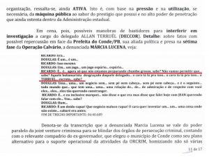 O tom da conversa e as frases revelam que embora tenha sido preso por formação e comando de organização criminosa, o ex-governador continua agindo para obstacular as ações públicas de combate a supostos crimes na cidade de Conde, onde a prefeita Márcia Lucena, é sua aliada.