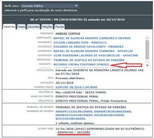 STJ publica recurso do MPF — Ainda reina mistério sobre o que decidiu a ministra Laurita Vaz, que despachou, essa sexta (dia 31), no processo do habeas corpus do ex Ricardo Coutinho. Trata-se do HC impetrado pelos seus advogados com pedido de liminar pela sua soltura. Como se sabe, o ministro Napoleão Nunes Maia, em decisão muito questionada, resolveu atender ao pedido do ex-governador, que foi solto, dois dias após ser preso.